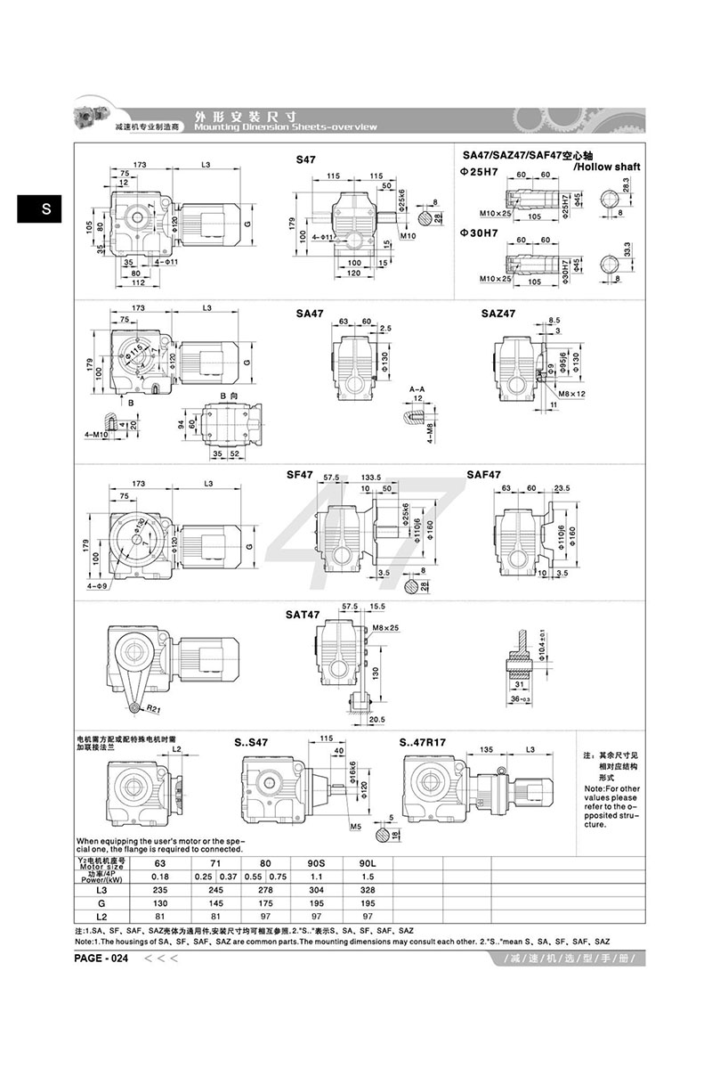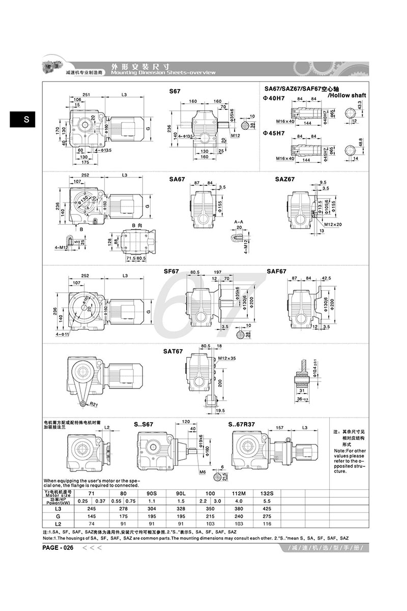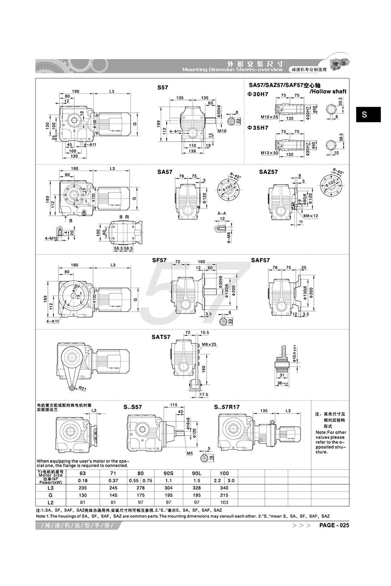S系列斜齿-蜗轮蜗杆减速机与无级变速机组合是一种动力传达机构,利用齿轮的速度转换器,将电机(马达)的回转数减速到所要的回转数,并得到较大转矩的机构。在用于传递动力与运动的机构中,减速机的应用范围相当广泛。在各式机械的传动系统中都可以见到它的踪迹,从交通工具的船舶、汽车、机车,建筑用的重型机具,机械工业所用的加工机具及自动化生产设备,到日常生活中常见的家电,钟表等等。其应用从大动力的传输工作,到小负荷,精确的角度传输都可以见到减速机的应用,且在工业应用上,减速机具有减速及增加转矩功能。因此广泛应用在速度与扭矩的转换设备。