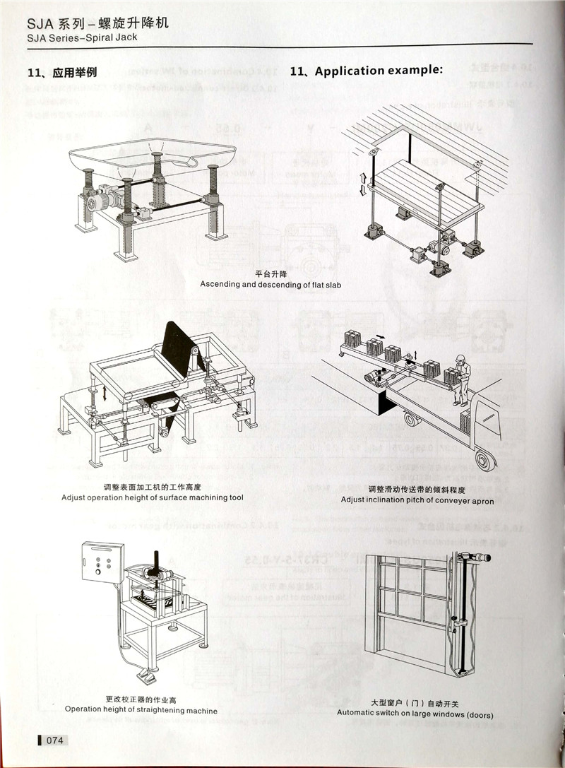 升降机是一种基础起重部件,具有结构紧凑、体积小、重量轻、动力源广泛、无噪音、安装方便、使用灵活、功能多、配套形式多、可靠性高、使用寿命长等许多优点。可以单台或组合使用,能按一定程序准确地控制调整提升或推进的高度,可以用电动机或其他动力直接带动,也可以手动。它有不同的结构形式和装配形式,且提升高度可按用户的要求定制。广泛应用于机械、冶金、建筑、水利设备等行业,具有起升、下降及借助辅件推进、翻转及各种高度位置调整等诸多功能。